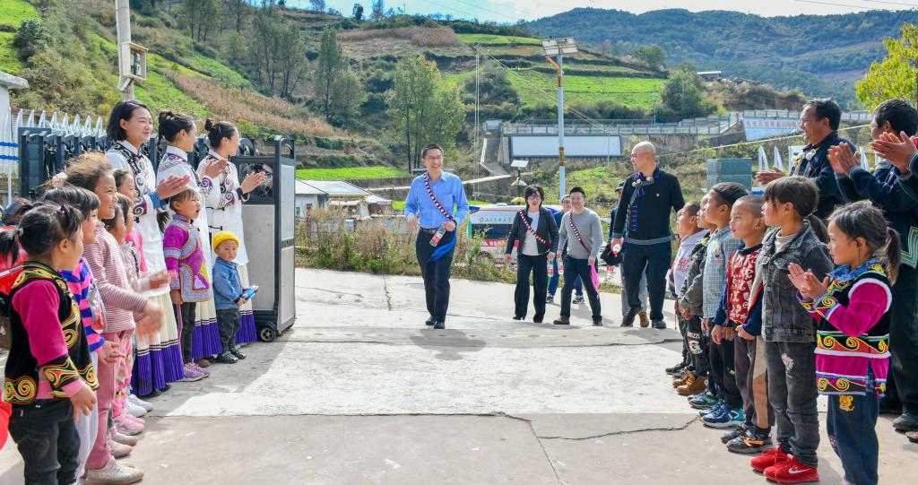 在村里的观景台上,彝族姑娘们为江涌一行戴上了象征美好与吉祥的“英雄带”。附属医院派驻的驻村书记郑煜和驻村干部孔亚锋为江涌一行介绍村里的各项设施,说到村集体经济,他们脸上笑开了花:“今年咱们村里的养羊场、养鸡场、养蜂场,都发展得很好,村里5位致富带头人更是铆足了劲儿,带领大家致富奔康,过段日子咱们准备再建一个蛋鸡养殖场,专门生产绿色有机土鸡蛋,还能帮助村集体经济增加收入。”