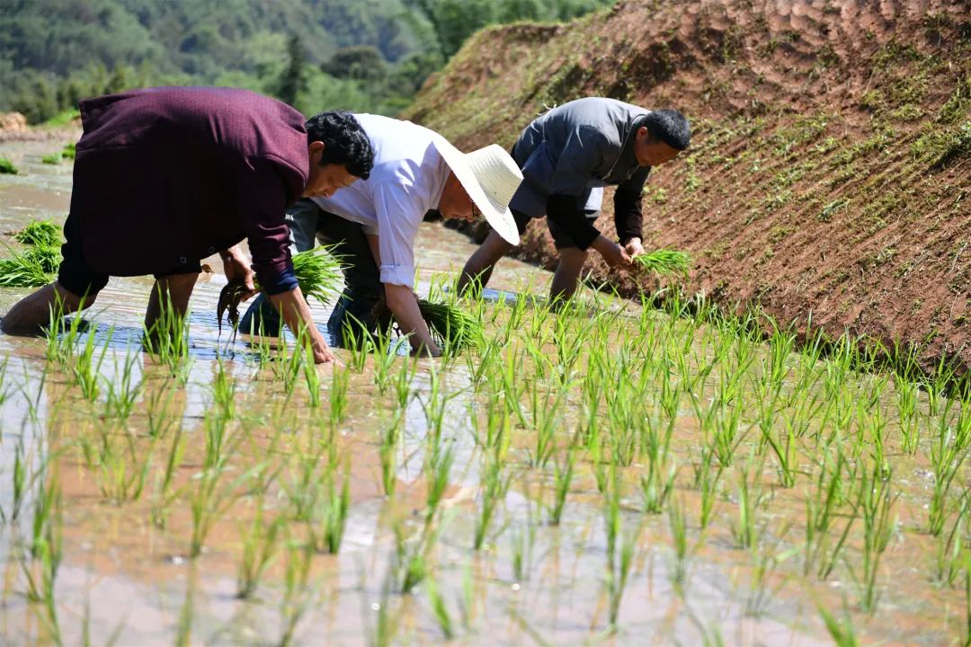 顶着烈日,伴着笑声,这边的秧苗插完了,那边的义诊活动也结束了,大家聚集在储存厂坝开展院坝座谈。
