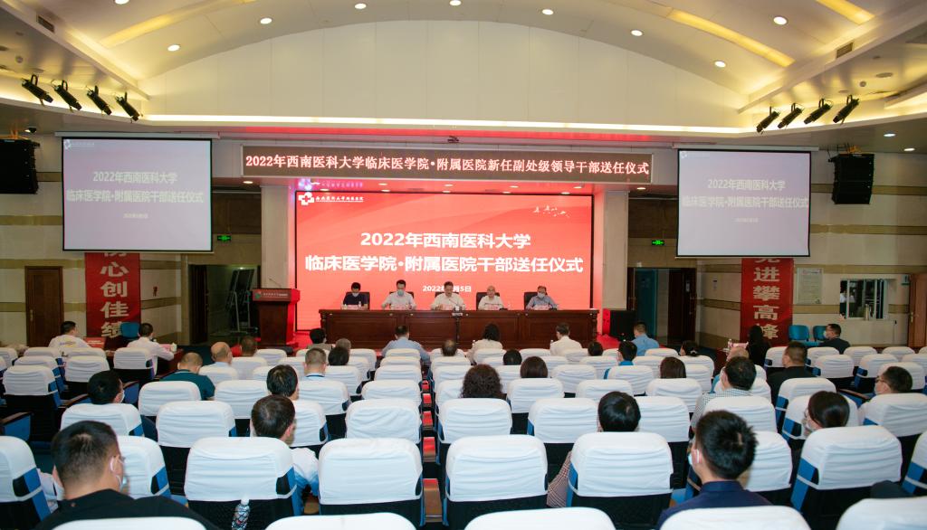 5月5日下午,beat365英国官方网站临床医学院•附属医院新任副处级领导干部送任大会在医院忠山院区学术报告厅举行。学校党委书记廖斌,党委常委、组织部部长冯天明,党政办公室主任唐柯,组织部干部科科长钟琳莉,医院全体在院院领导,附四院处级领导干部,以及新任医院副院长万居易出席会议。
