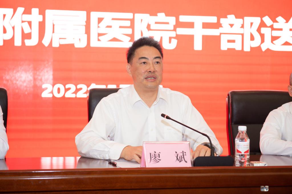 廖斌同志在讲话中提出三点要求。一是要统一思想,提高认识。医院领导班子要团结带领全院职工把思想和行动统一到学校党委的决定上来,支持新任干部的工作;新任干部要上岗履职,找准位置,虚心学习,大胆工作,共同推动医院事业高质量发展;二是要忠诚担当,推动发展。希望医院一手抓好疫情防控,一手抓好党政工作要点和“十四五”规划落地落细落实,全体干部忠诚担当,撸起袖子加油干;三是要廉洁干净,为民务实。全体党员干部要按照五好干部标准,自觉接受各方面的监督,真正做到政治上坚定、经济上清白、作风上正派,努力营造风清气正的干事创业环境。