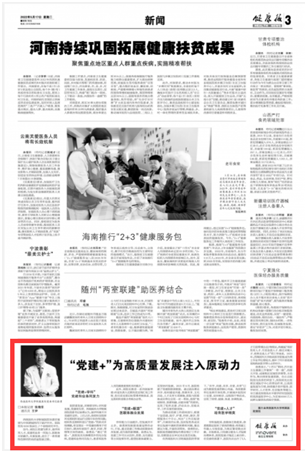 2022年5月17日,beat365英国官方网站附属医院党建案例在《健康报》第11790期的第3版刊登,文章以《“党建+”为高质量发展注入原动力》为题,从“党建+学科”“党建+联盟”“党建+人才”三个方面进行阐述。