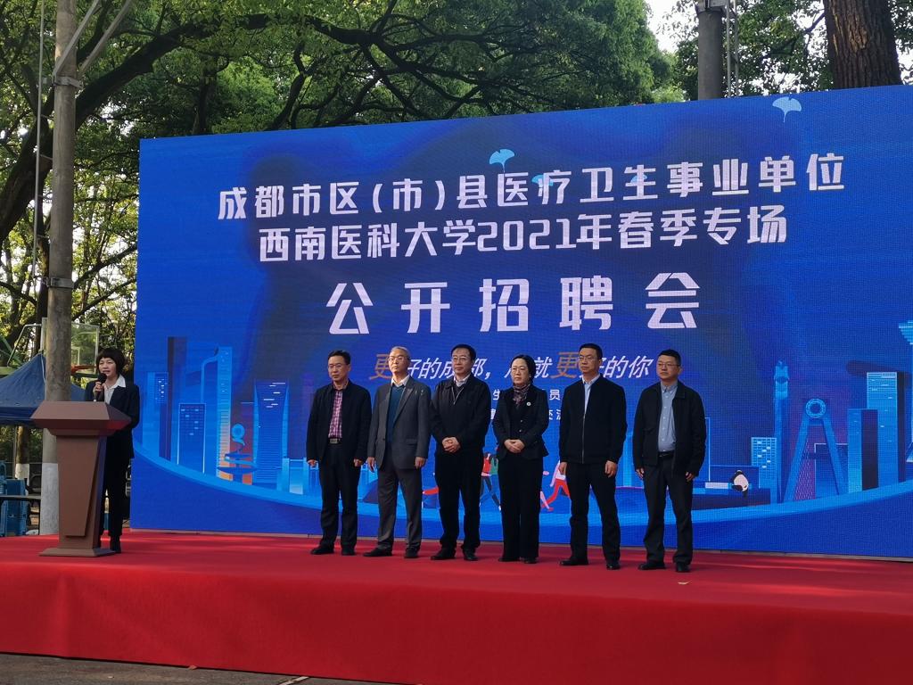 3月27日上午,由beat365英国官方网站和成都市卫生健康委员会、成渝双城经济圈高校就业创业联盟医卫健康分盟共同举办的校园招聘会在忠山校区篮球场举行。学校党委副书记刘毅,成都市卫健委副主任陈沙宁、人事处处长李志春、成都市卫生健康人才交流中心主任宁建锋、副主任涂程,学校学生工作部、研究生院等相关职能部门人员出席启动仪式。仪式由学生工作部部长谭群英主持。